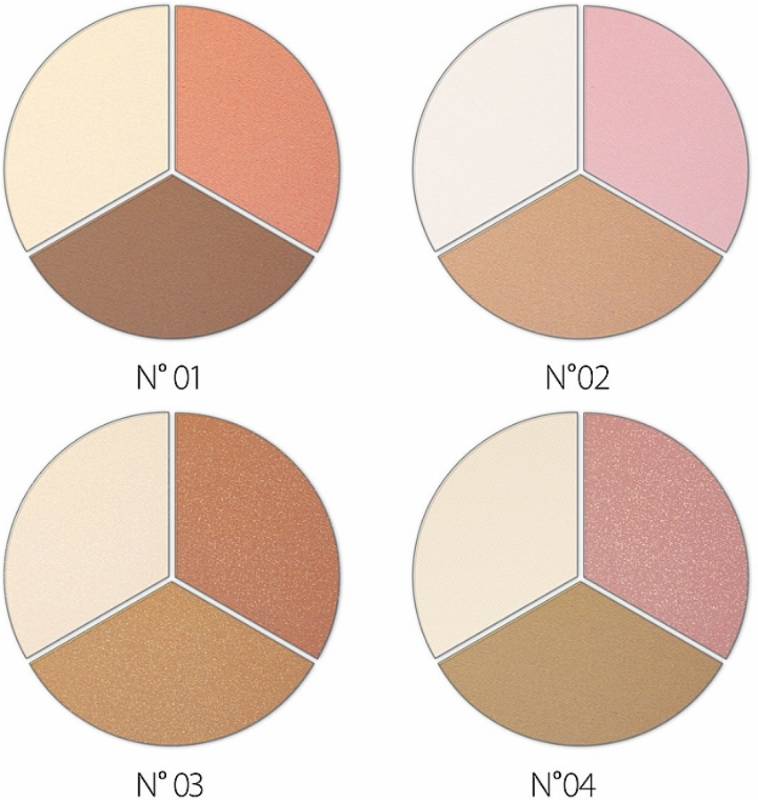 Съставки (хайлайтър): Талк, Слюда (Mica), Каолин, Магнезиев стеарат, Найлон-12, Царевично нишесте (Zea Mays), Течен парафин (Paraffinum Liquidum), Вазелин, Изохексадекан, Изододекан, C13-15 Алкан, Феноксиетанол, Метилпарабен, Етилпарабен, Бутилпарабен, Пропилпарабен [+/-] CI 77891, CI 77491, CI 77492, CI 77499, Калай оксид (Tin Oxide).